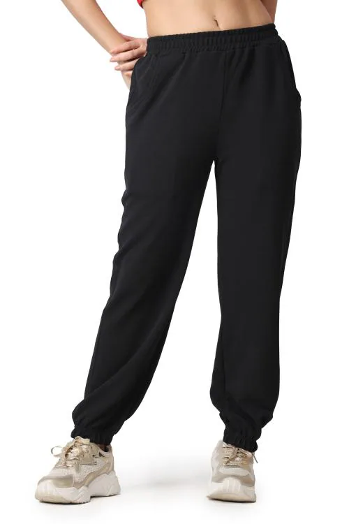 Popwings Women Casual Bright Black Solid Popwings Women Joggers ! Black Solid Self Design Joggers for Women