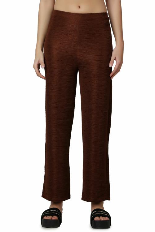 Popwings Women Casual Chocolate Brown Solid Self Design Relaxed Trouser
