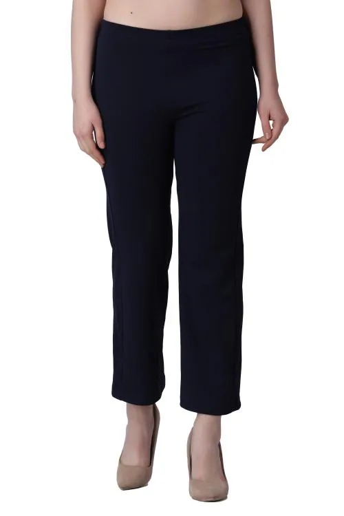 Popwings Women Casual Navy Blue Solid Trouser ! Navy Blue Solid Self Design Formal Twill Trouser for Women