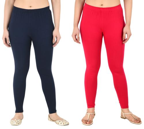 PREEGO Women Dark Blue & Rani Pink Ankle Length Solid Leggings Pack Of 2