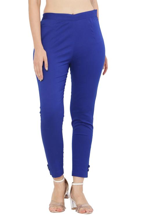 PREEGO Women Regular Fit Cotton Blend Royal Blue Trousers