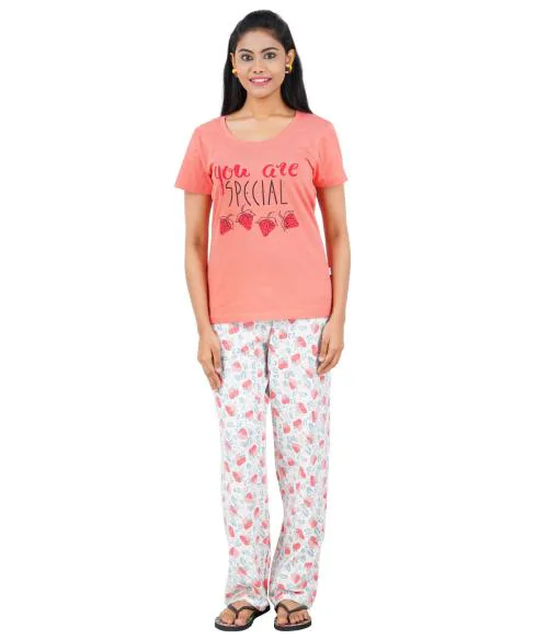 PRIDE APPAREL-Ladies Cotton Pyjama Sets -Peach