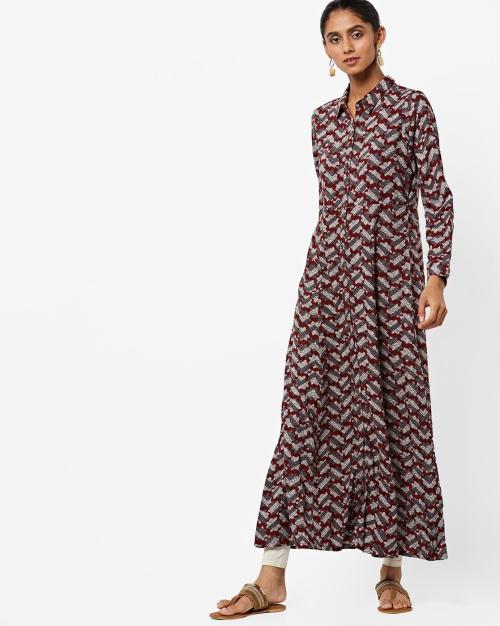 Printed Ankle-Length A-line Kurta with Shirt Collar