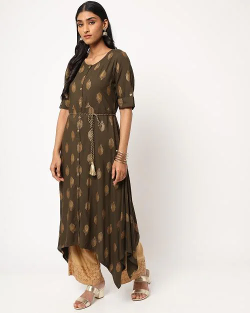 Printed Fit & Flare Dress with Asymmetric Hemline