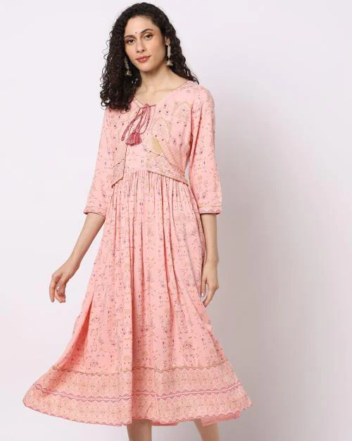 Printed Fit & Flare Dress with Mock Jacket