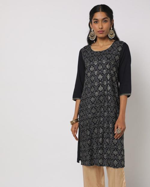 Printed Round-Neck Straight Kurta