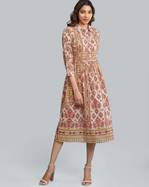 Printed Dress with Cuffed Sleeves
