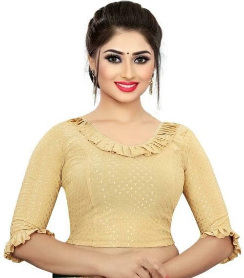 PU Fashion Women Beige Solid Cotton Lycra Blend Blouse