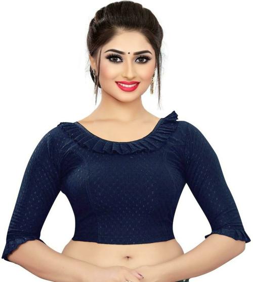 PU Fashion Women Blue Solid Cotton Lycra Blend Blouse