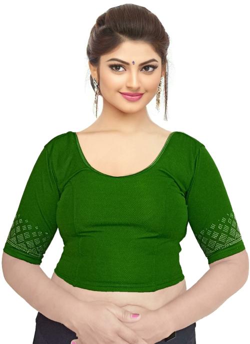 PU Fashion Women Green Embellished Lycra Blend Blouse