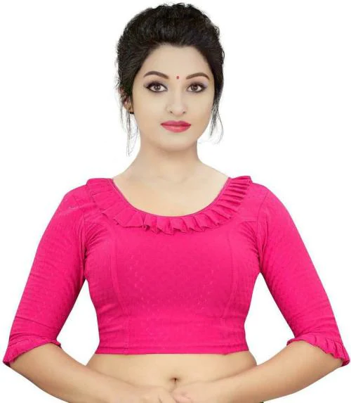 PU Fashion Women Pink Self Design Cotton Lycra Blend Blouse