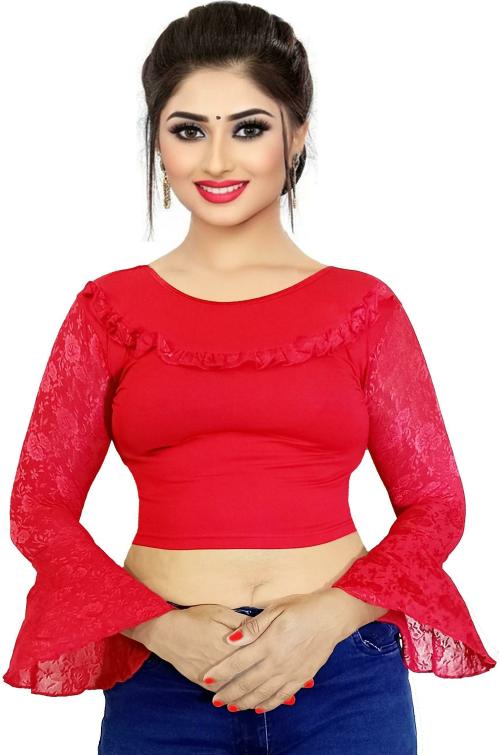 PU Fashion Women Red Self Design Cotton Lycra Blend Blouse