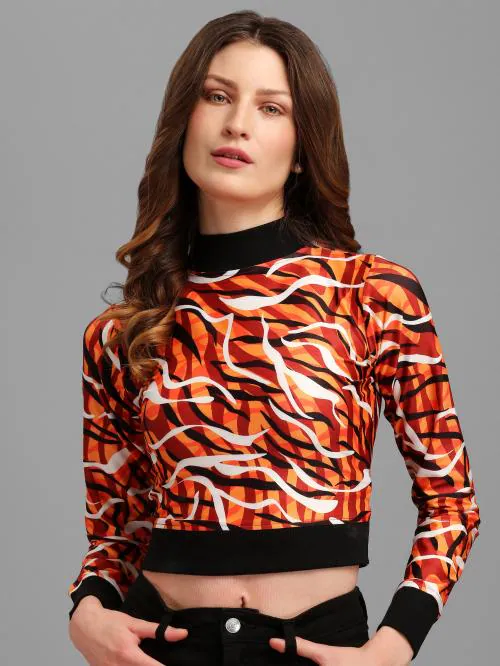Purvaja Women Orange Crop Western Top