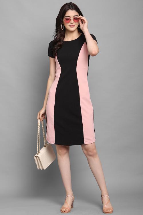 Purvaja Women Peach And Black Bodycon Western Dress