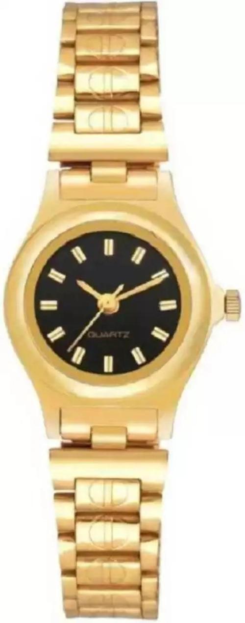 Qaliba Analog Black Dial Gold Strap Watch For Girls