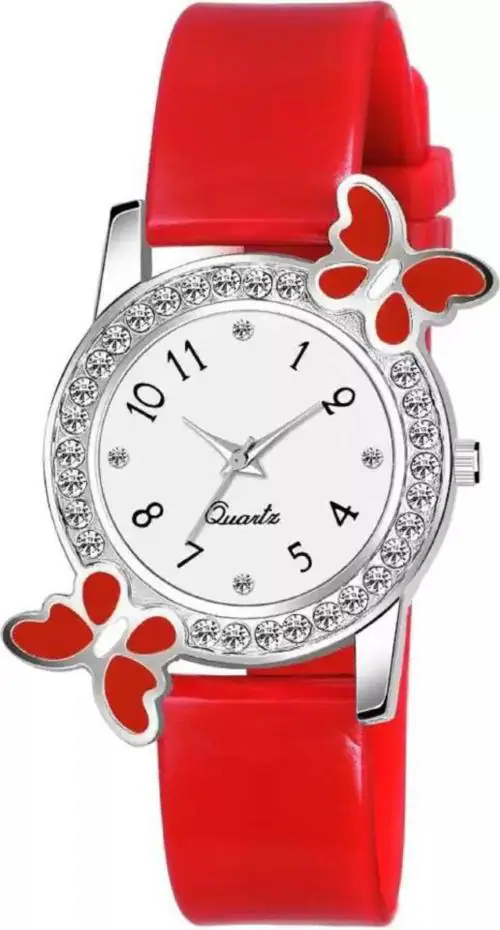 Qaliba Analog White Dial Red Strap Watch For Girls