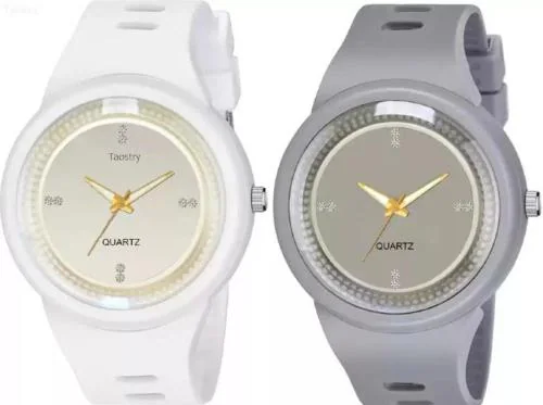 Qaliba Analog White, Grey Dial White Strap Watch For Boys And Girls (Pack Of 2)
