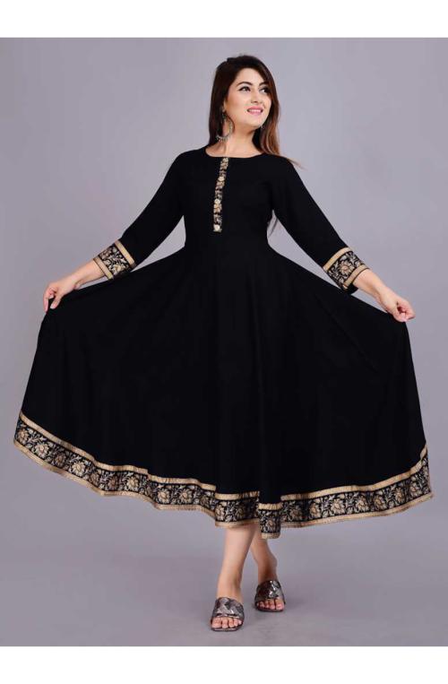 RA Creation Women Black Printed Viscose Rayon KurtaXXL