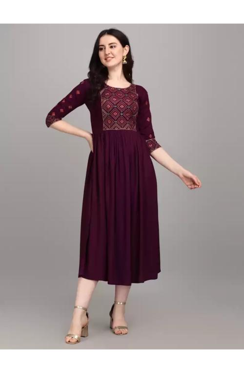 RA Creation Women Grey Foil Print Viscose Rayon Kurta
