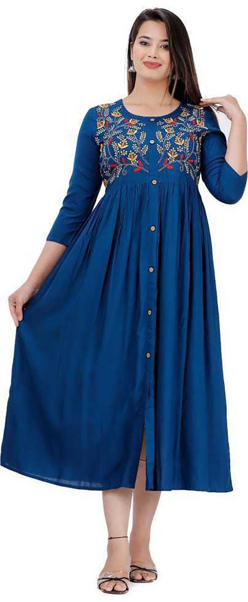 RA Creation Women Royal Blue Embroidered Viscose Rayon KurtaM