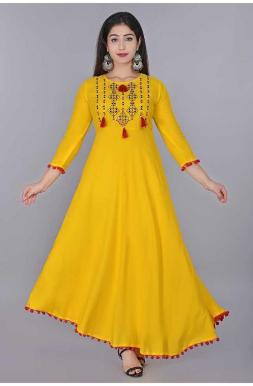 RA Creation Women Yellow Embroidered Viscose Rayon KurtaXL