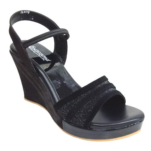 Racecourse Women's Wedges Heel High Bottom Zarina Sandal With the Heel Height of 4 Inch 419 Black