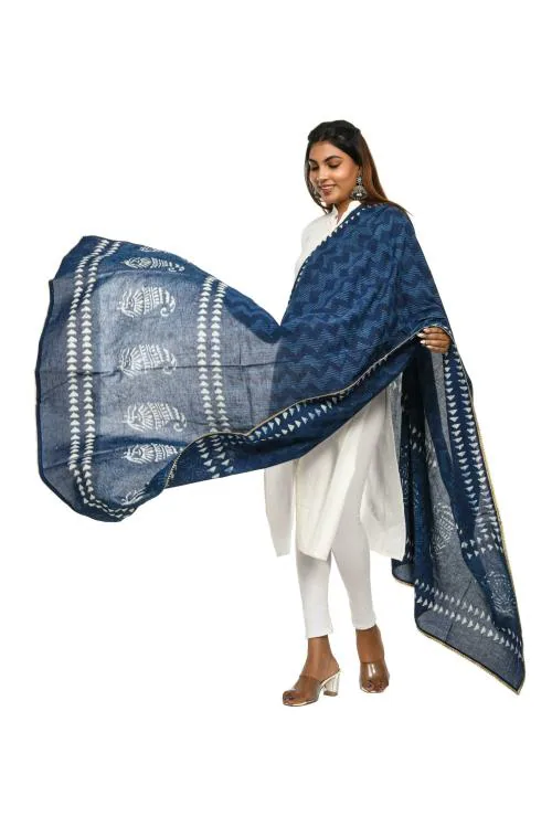 RAMESHWARI CREATIONS Women Blue Self Design Cotton Dupatta