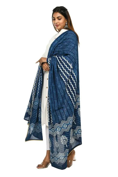 RAMESHWARI CREATIONS Women Blue Self Design Cotton Dupatta