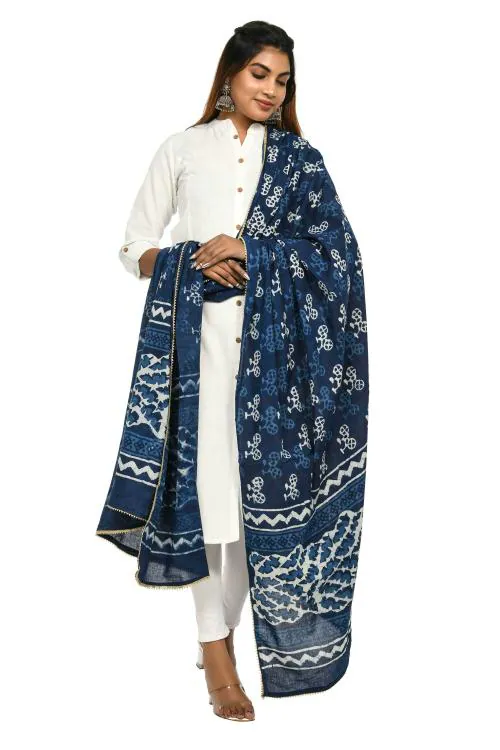 RAMESHWARI CREATIONS Women Blue Self Design Cotton Dupatta