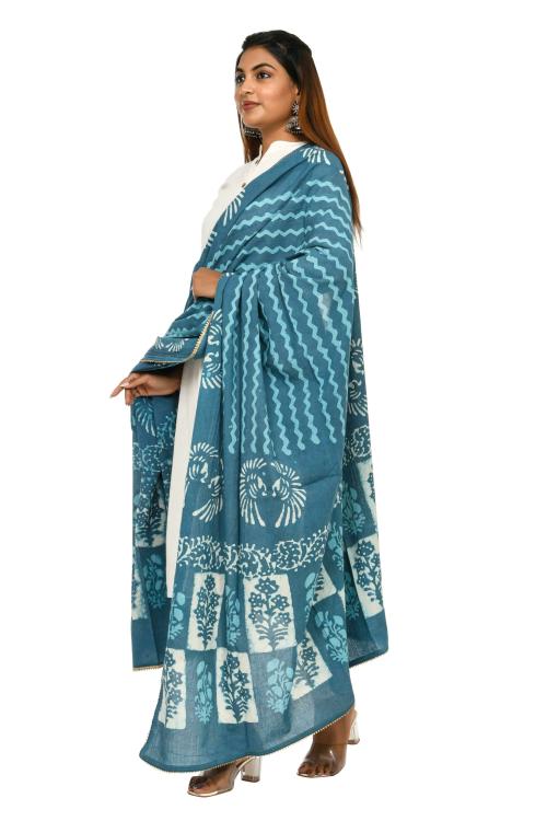 RAMESHWARI CREATIONS Women Turquoise Self Design Cotton Dupatta