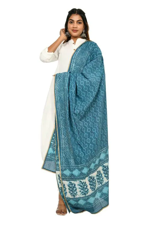 RAMESHWARI CREATIONS Women Turquoise Self Design Cotton Dupatta