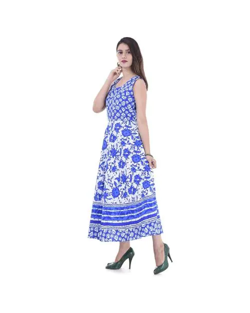 Rangun Women Maxi Cotton Blue Color Printed Dress