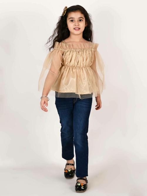RANJ Girls BEIGE Polyester Top (9-10 Y)