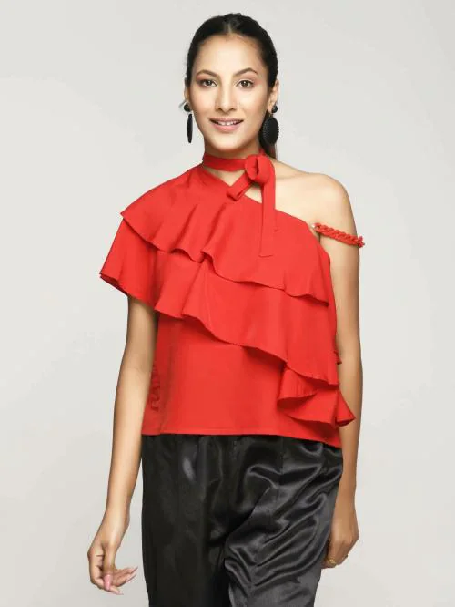 RANJ Women Embellished Crepe Top (M)