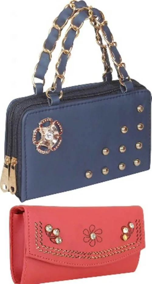 Rapid Costore Leatherette Blue And Pink Clutch ,Pack of 2