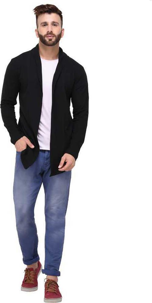 Rayware Indra Fashion Men Black Solid Cotton Blend Shrug