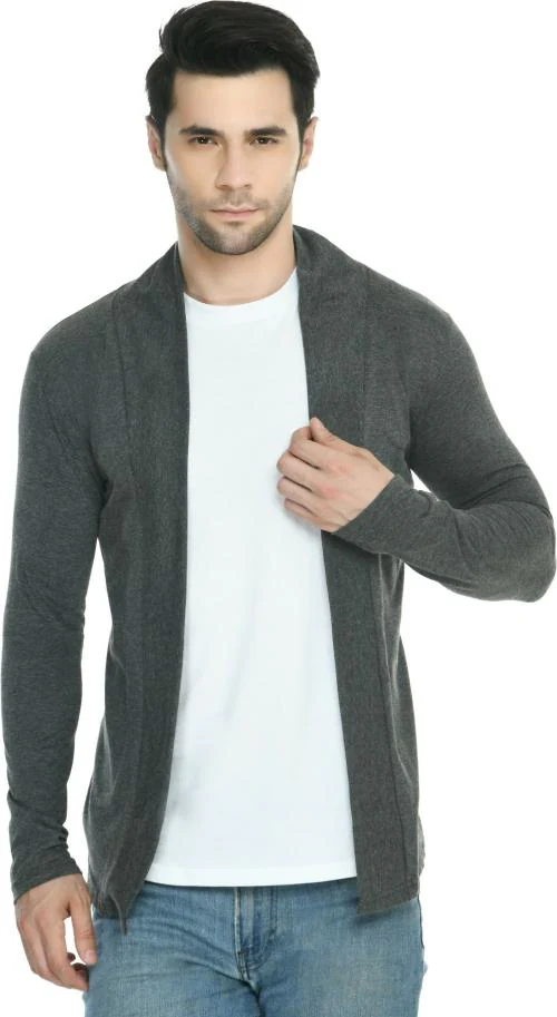 Rayware Indra Fashion Men Grey Solid Cotton Blend Shrug