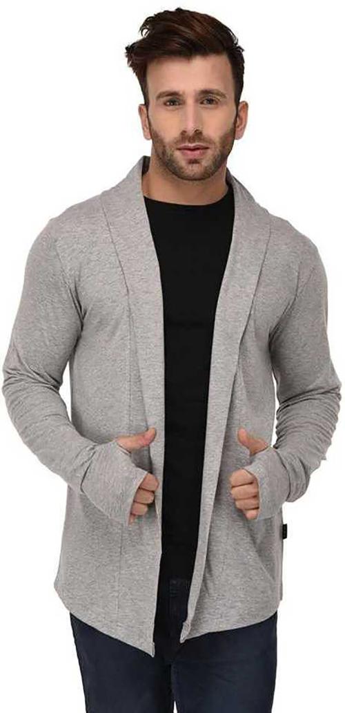 Rayware Indra Fashion Men Grey Solid Cotton Blend Shrug