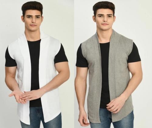 Rayware Indra Fashion Men White, Grey Solid Cotton Blend Pack of 2 Shrug