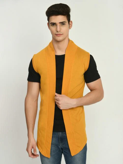 Rayware Indra Fashion Men Yellow Solid Cotton Blend Shrug