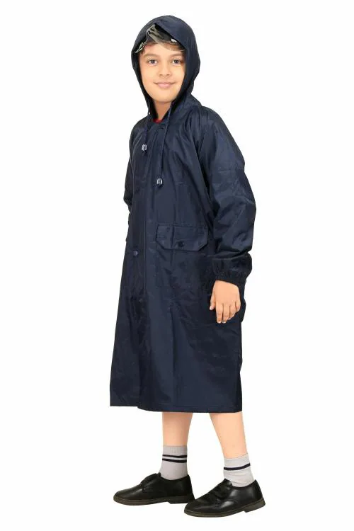 Real Polyester Raincoat for School Boys & Girls with Hood, Pockets and School Bag Coverage Bright Color Raincoat