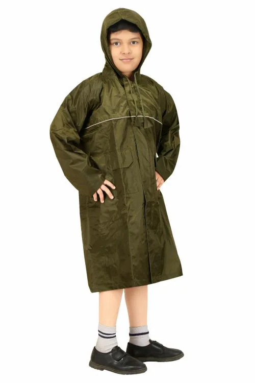 Real Polyester Raincoat for School Boys & Girls with Hood, Pockets and School Bag Coverage Bright Color Raincoat