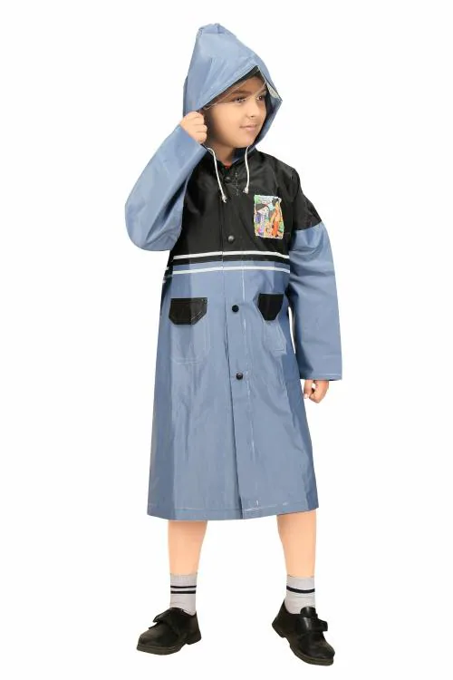 Real Polyester Raincoat for School Boys & Girls with Hood, Pockets and School Bag Coverage Bright Color Raincoat