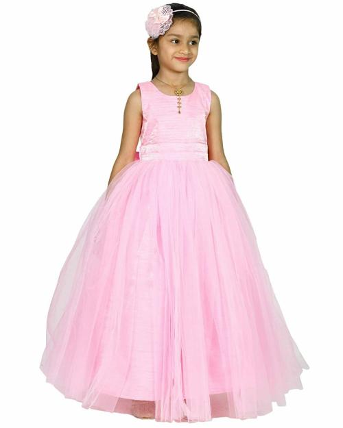 ReemJheem Girls Pink Solid Net Dresses