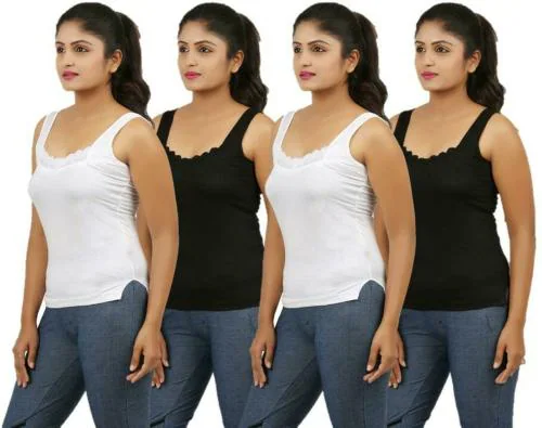 RENOX Women Black, White Solid Cotton Pack of 4 Camisoles (XL)