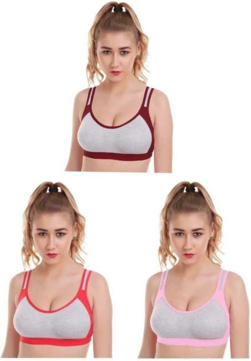 RENOX Women Multicolor Cotton Pack of 3 Non Padded Sports Bra (36)