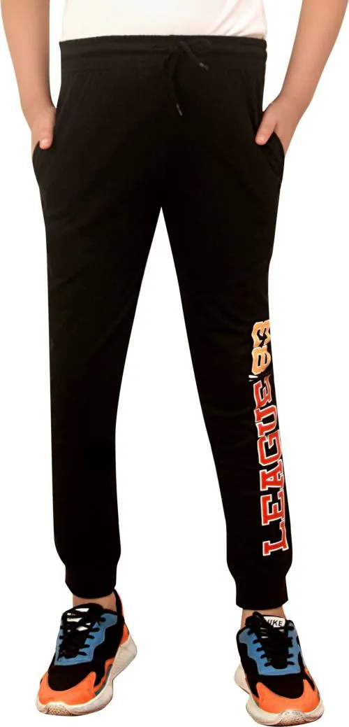 Rhythm Boys Black Cotton Blend Printed Track Pant (11-12Y)