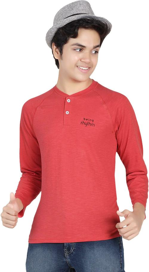 Rhythm Boys Red Solid Hosiery Tshirt (8-9 Y)
