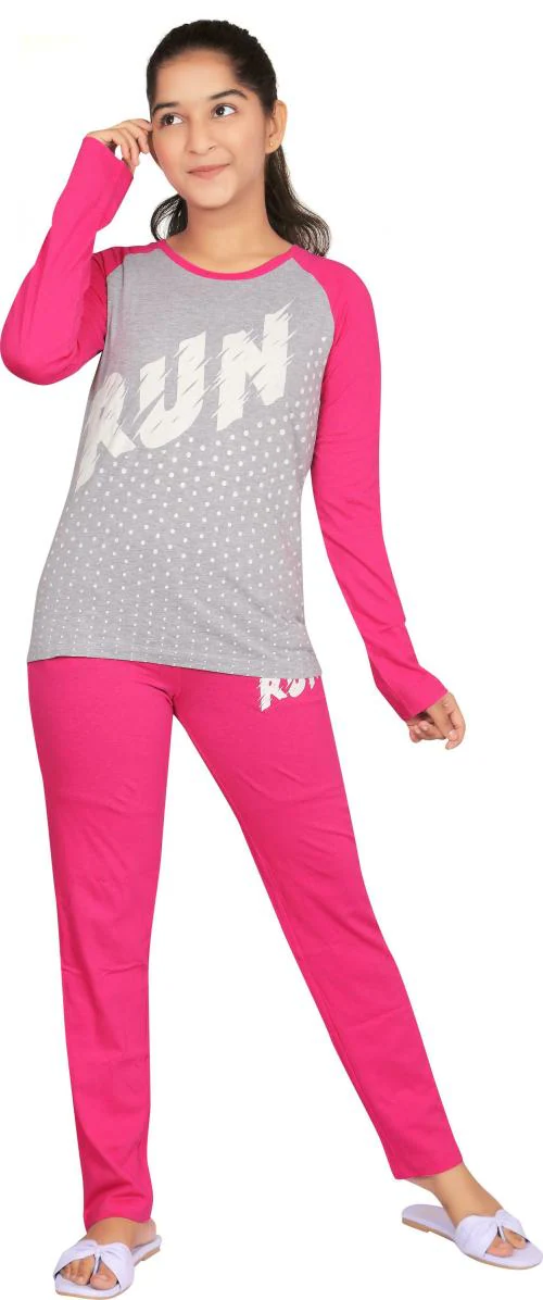 Rhythm Girls Grey, Pink Colorblock Cotton Top & Pyjama Set (8-9 Y)