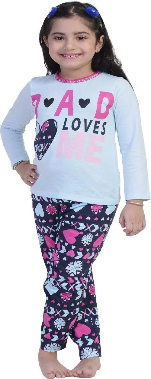 Rhythm Girls Light Blue Printed Pure Cotton Top & Pyjama Set (6-7 Y)